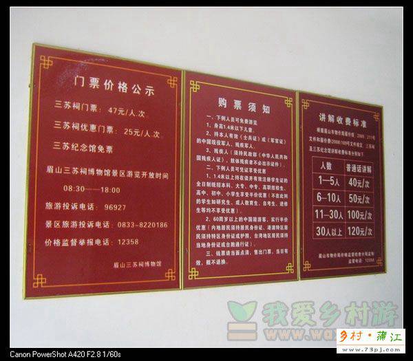 三苏祠的门票价格是47/人,如果持学生证可享受优惠价25/人。如果持士兵证、军官证、老年证可免费游览三苏祠。所以平时这里是老年人们聚会聊天喝茶打牌的最佳场所。周末时也是附近苏祠中学的学生参观游览的好地方。
