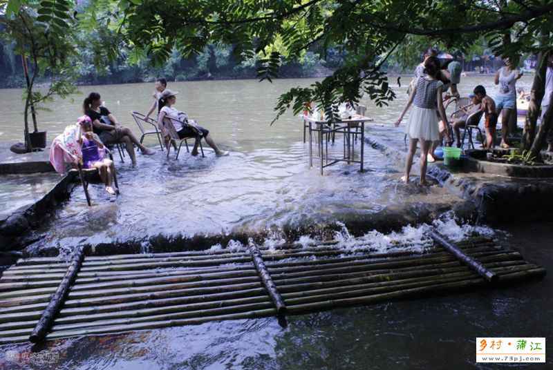 农家乐都靠河边,河边是人工修筑过的,绿树成荫,树底下可以喝茶,打麻将,吃饭,很凉快。最安逸的是可以免费(注意是免费哦)划竹筏,随便整,累了为止。河水很清凉,也不得好深,叉水,扳螃蟹,抠螺丝,好耍的很。想象一下,弄个西瓜在河水里冰起,喝哈儿茶,打哈儿麻将,划哈儿竹筏,累了整点西瓜,完了吃点农家饭,该是多安逸多好耍哦!